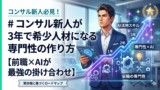 AIを使いこなす経験はそのままキャリアの武器になります。事業会社でのAI活用経験がコンサル転職でどう評価されるかについては、別記事(事業会社でAIを使いこなす人材がコンサル転職で有利な理由【2026年版】)で詳しく解説しています。